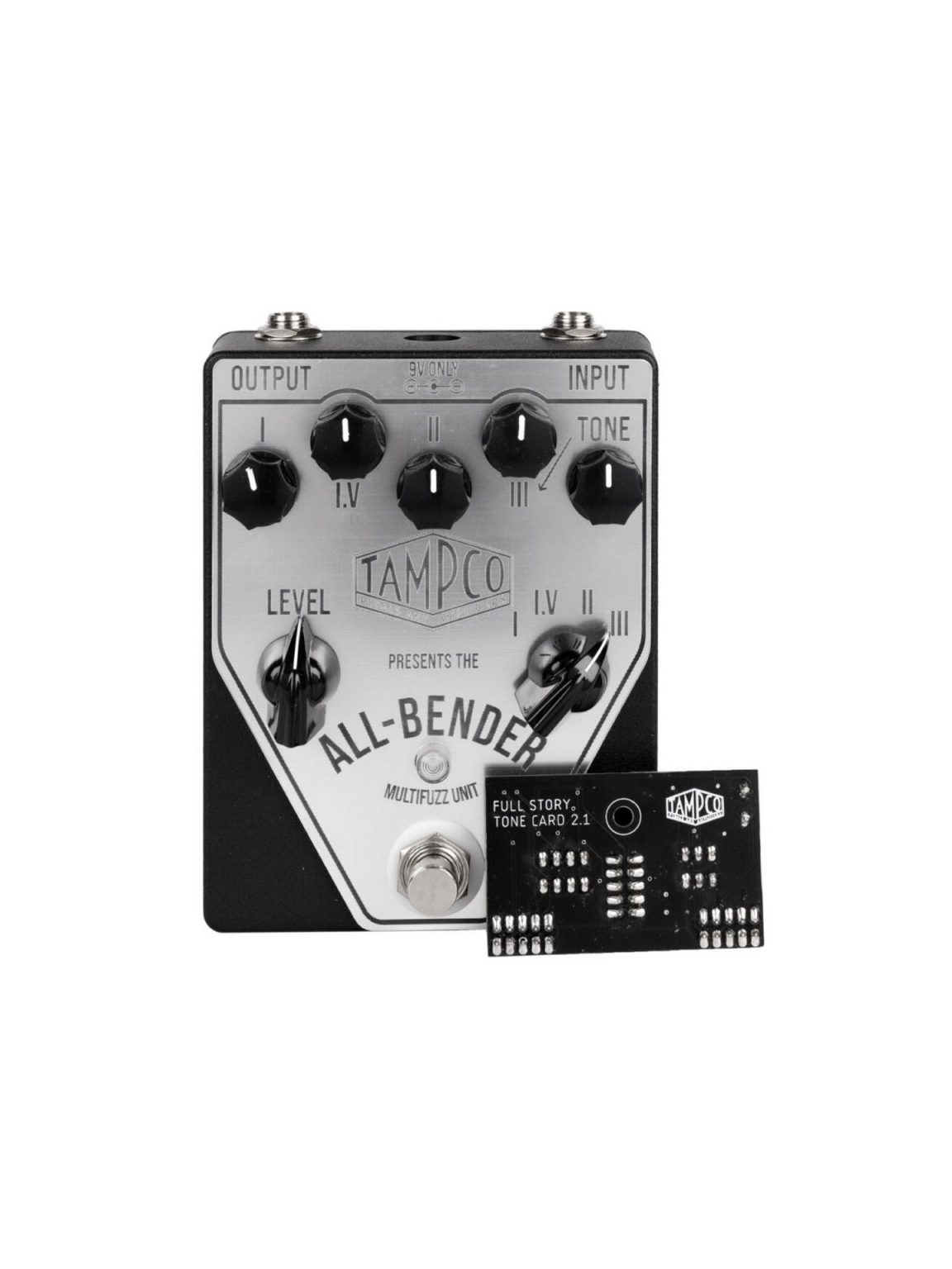 Ayant étudié en profondeur les circuits de toutes les versions de Tone Bender, Tampco propose une Tone Cards avec un circuit unique mêlant deux univers,