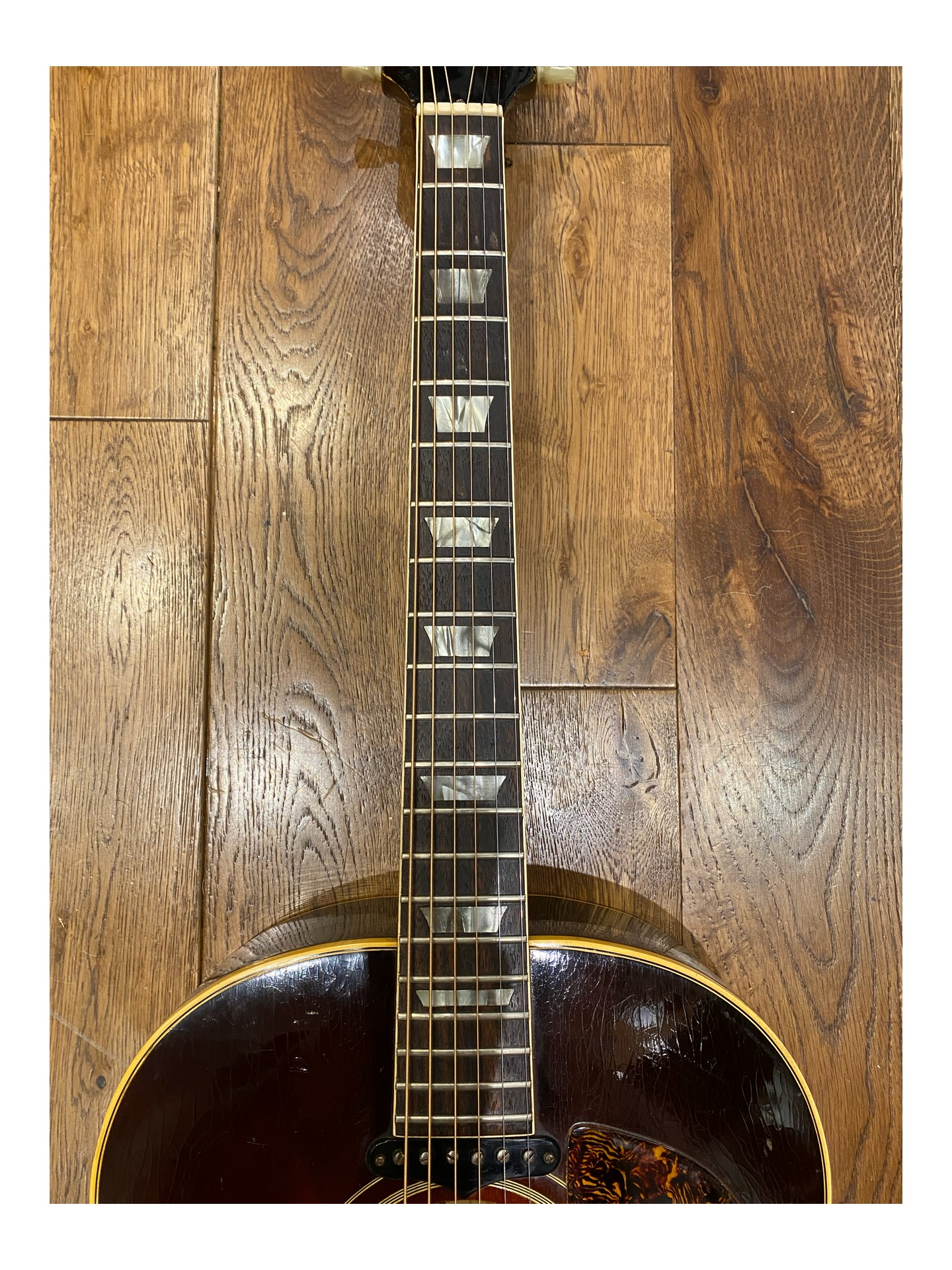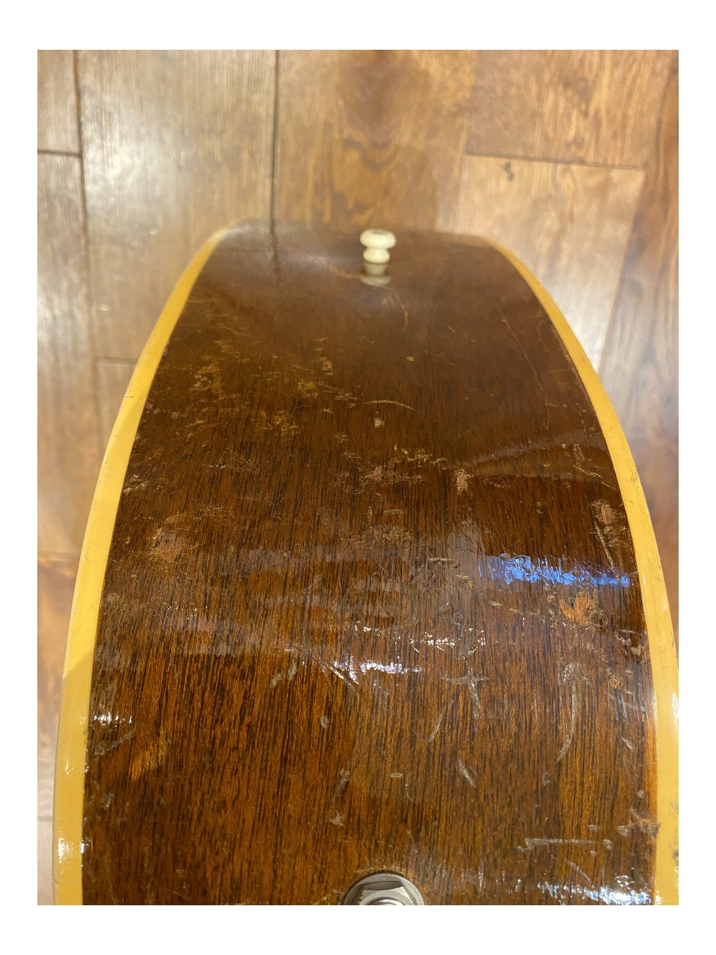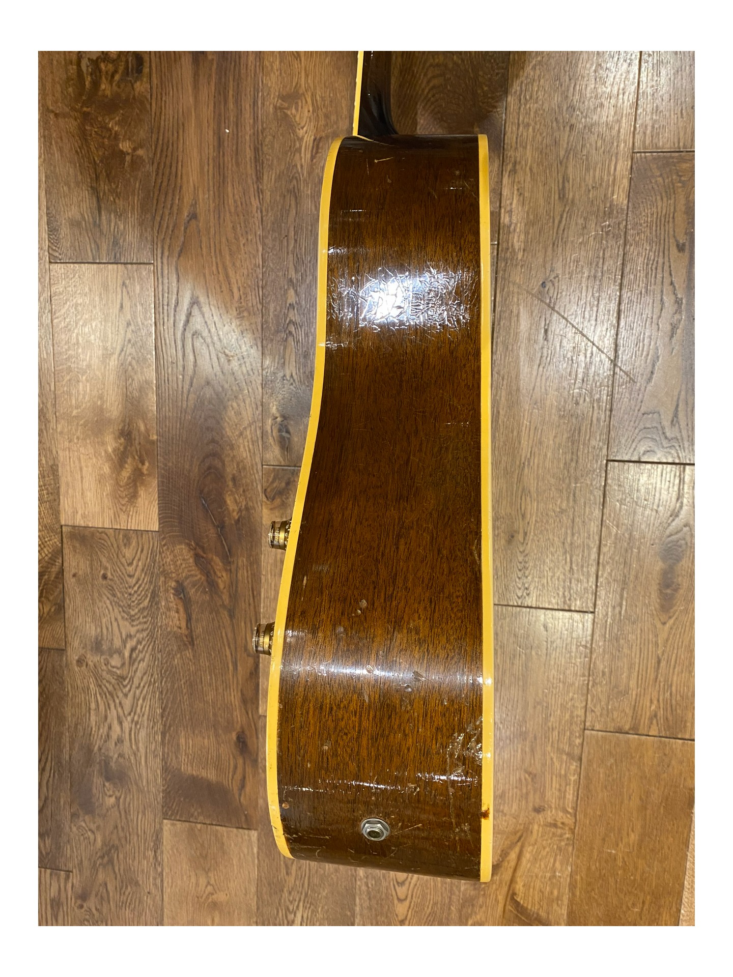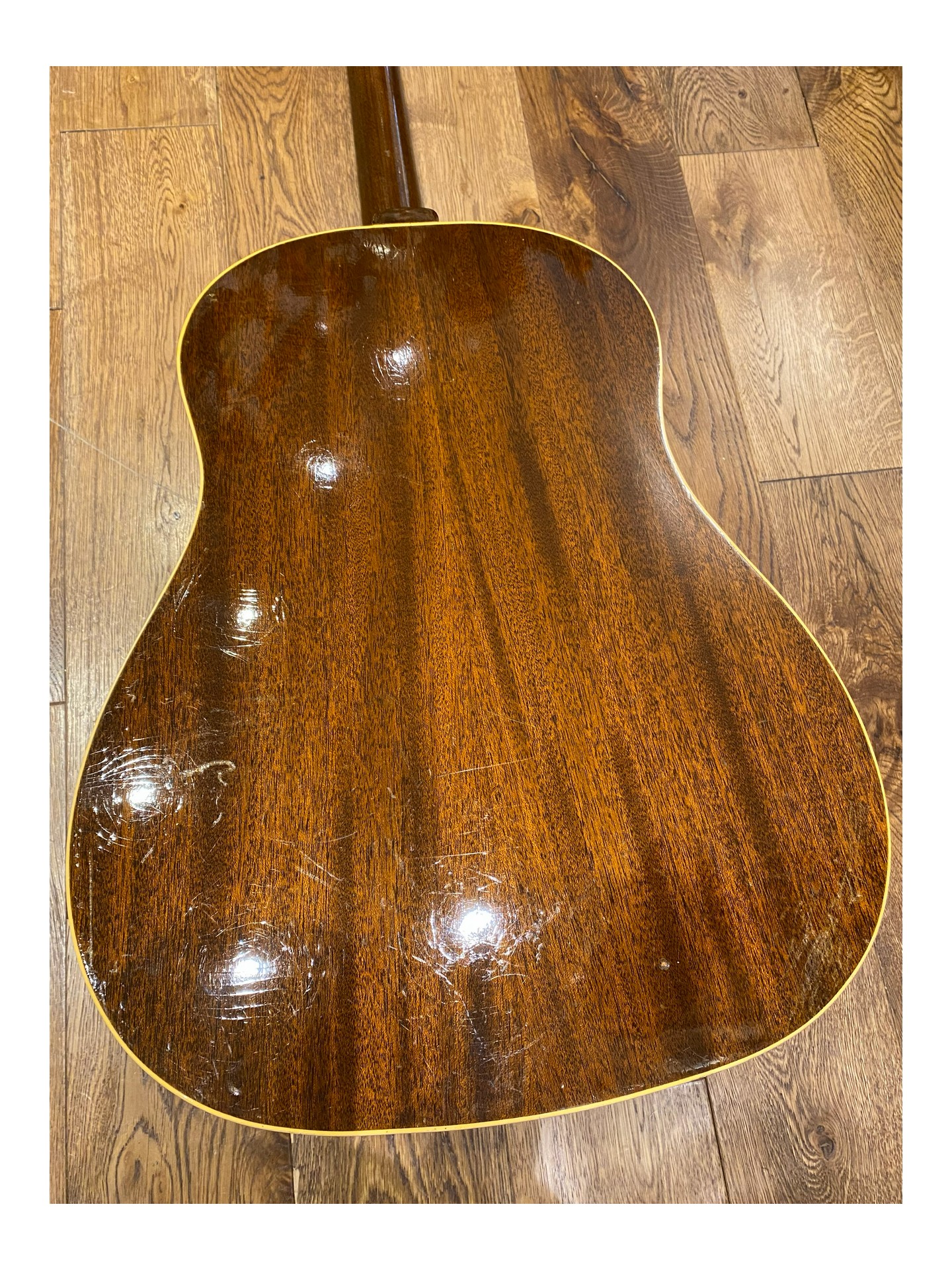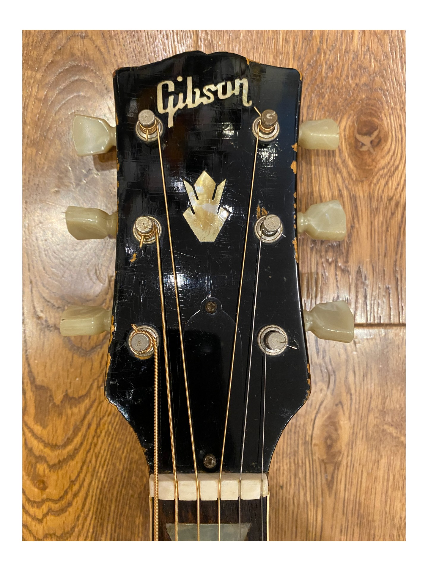 A 1967 Gibson J-160E in excellent condition, with a beautiful patina covering the entire instrument, reflecting its 58 years of age. This guitar has no cracks and is completely original. The J-160E is a round-shouldered dreadnought built with a laminated spruce top, mahogany back, sides, and neck, and rosewood fingerboard and bridge, with the intention of being played electrified. These guitars were designed for the stage, with an adjustable P-90 pickup and easy-to-see and easy-to-reach volume and tone controls. They also feature ladder bracing to prevent feedback on stage. John Lennon used a 1964 model on “I Want to Hold Your Hand,” “Nowhere Man,” and “Girl.” You know how they sound…