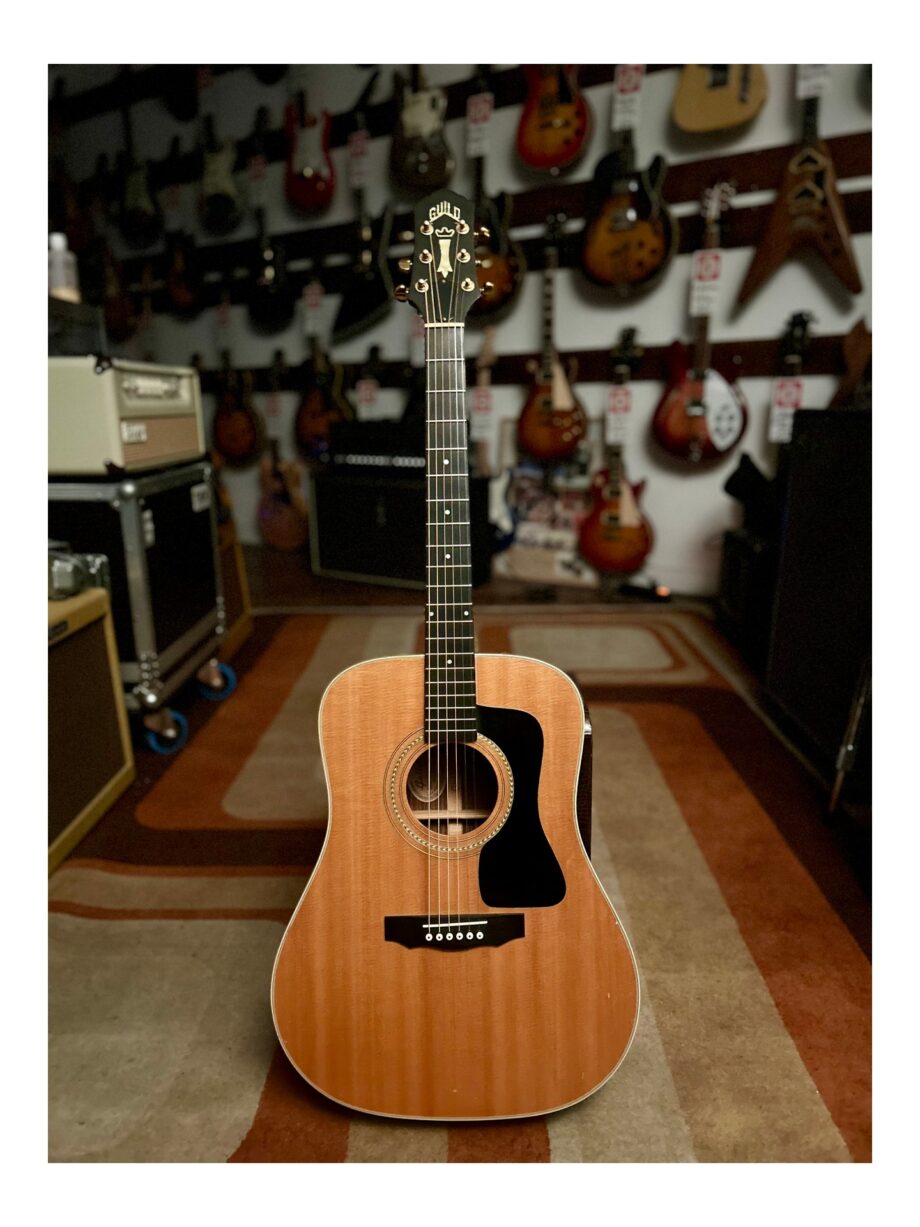 Une Guild DV52NT électro-acoustique fabriquée aux USA en 1993 et en très bon état. Excellent rapport qualité/prix. Livrée dans son étui d’origine.
