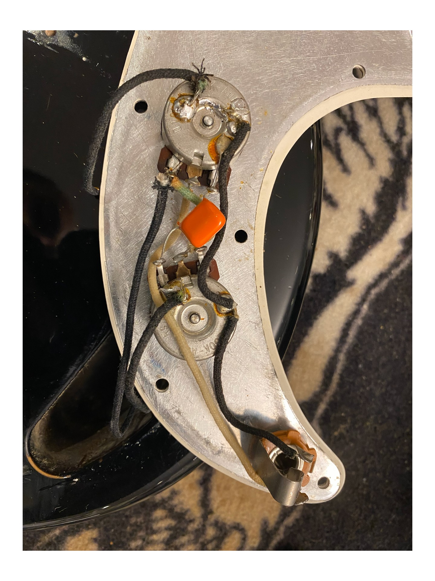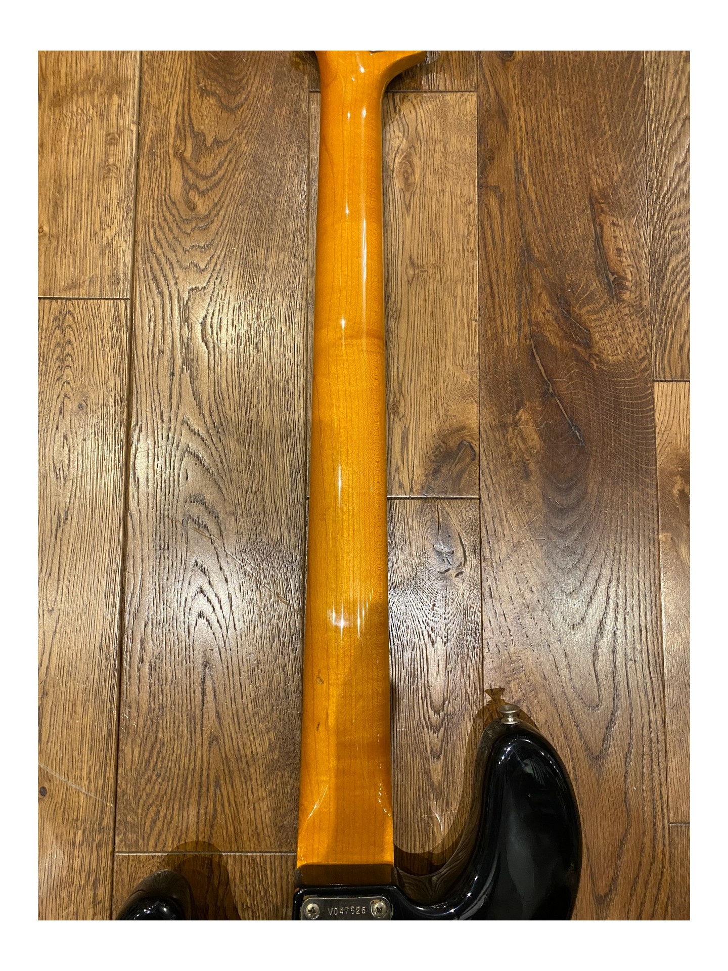 Une superbe Fender Precision Bass American Vintage ’62 Reissue, revernie en noir, fabriquée aux États-Unis en 1990. Produite pour le marché japonais comme l’atteste le note book « Yamano » inclus dans son étui rigide Fender tweed d’origine. Yamano est l’importateur Fender au Japon dont les sélections sont très recherchées et reconnues comme étant les meilleures de la production US exportée. Un excellent micro Lollar P-Bass a remplacé le micro d’origine qui est également fourni dans l’étui. C’est une P-Bass légère (3,8kgs) et qui sonne remarquablement. Un excellent rapport qualité/prix!