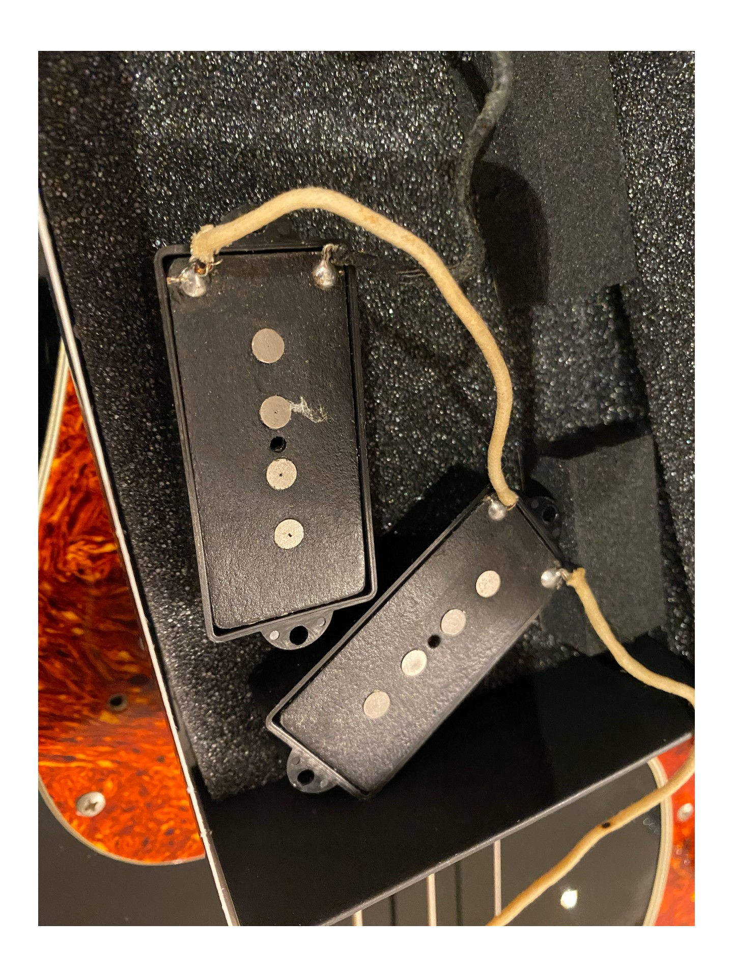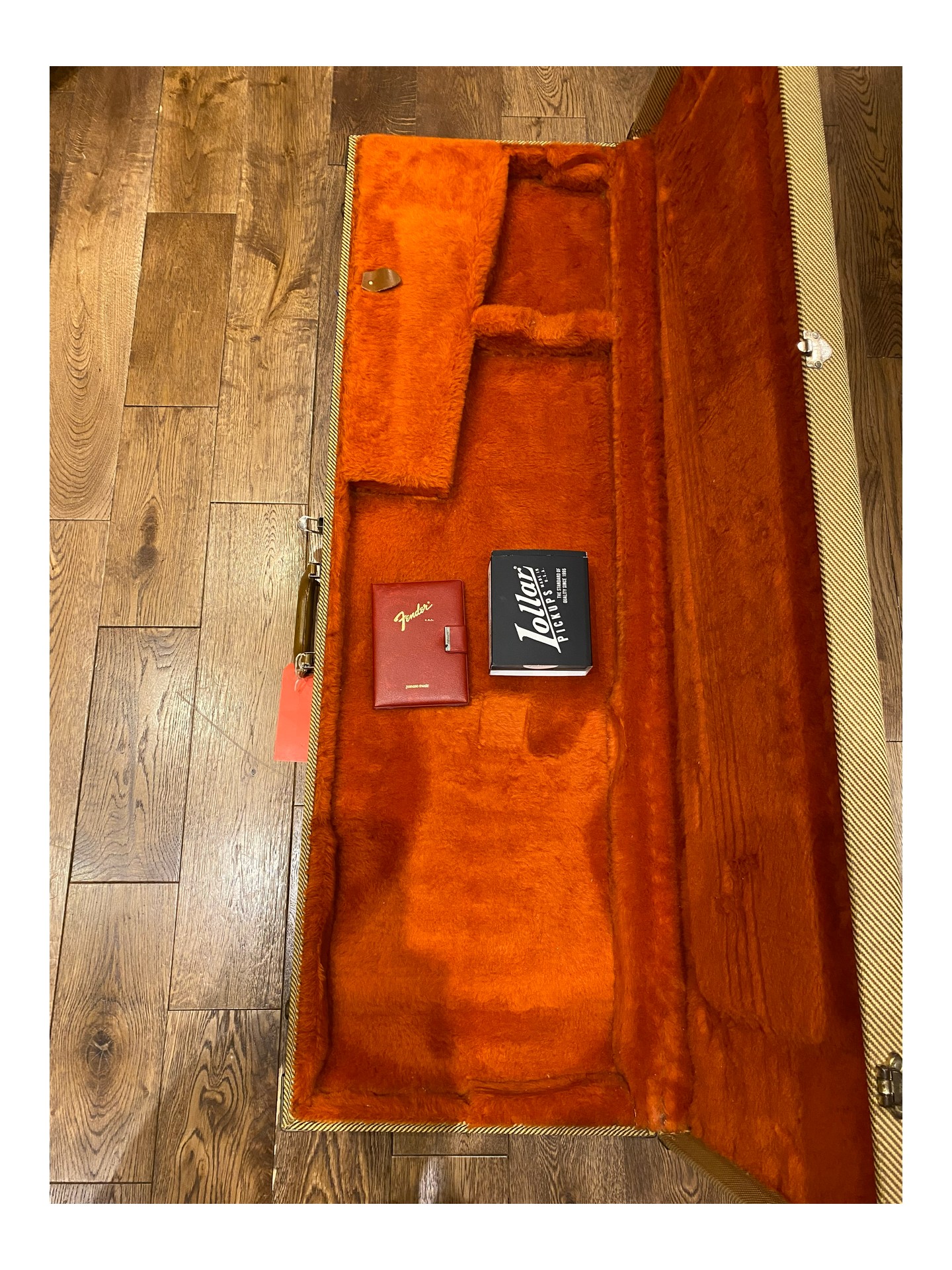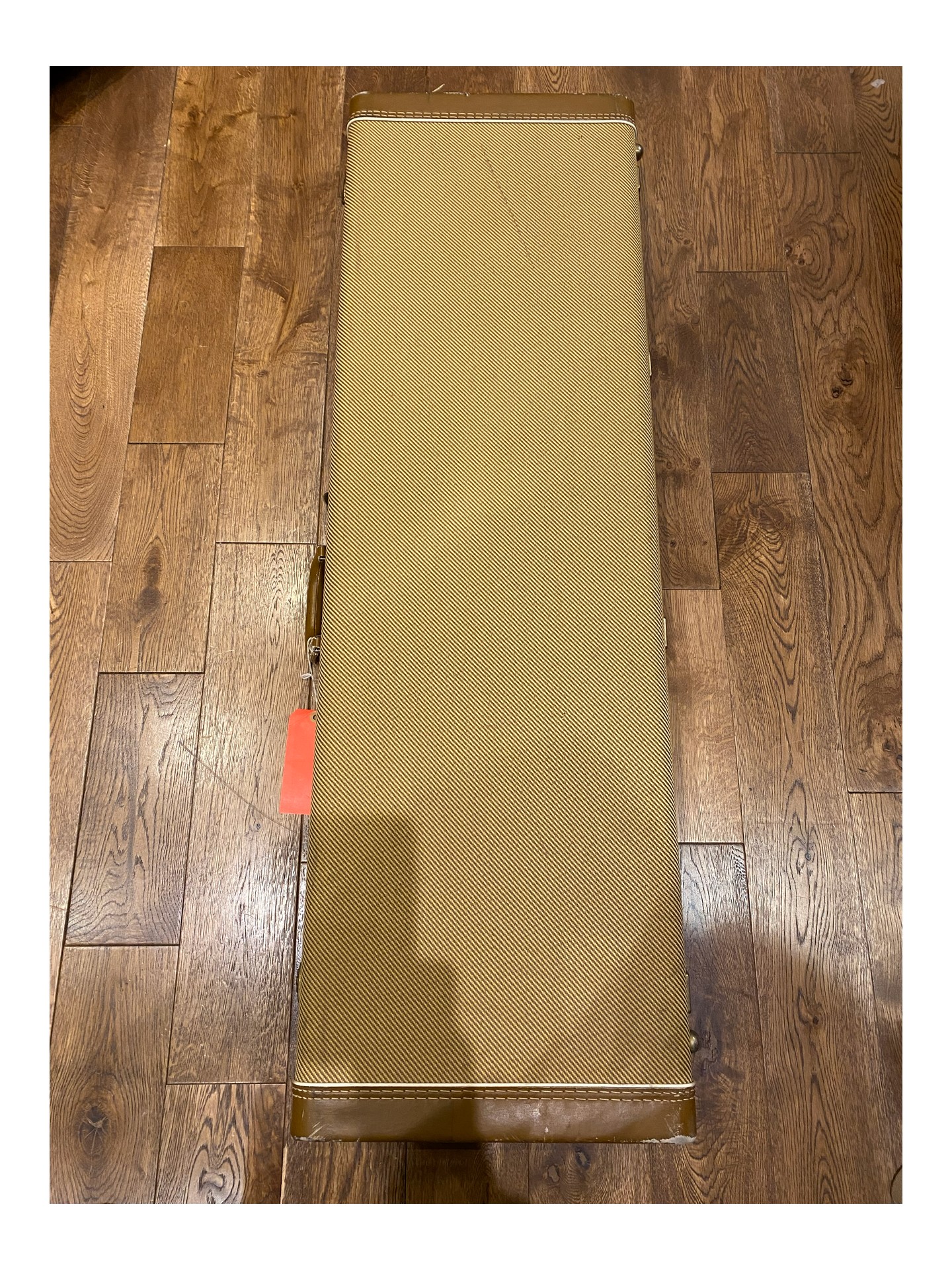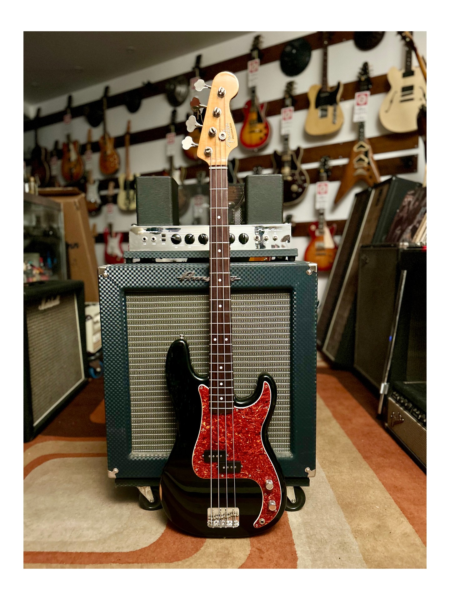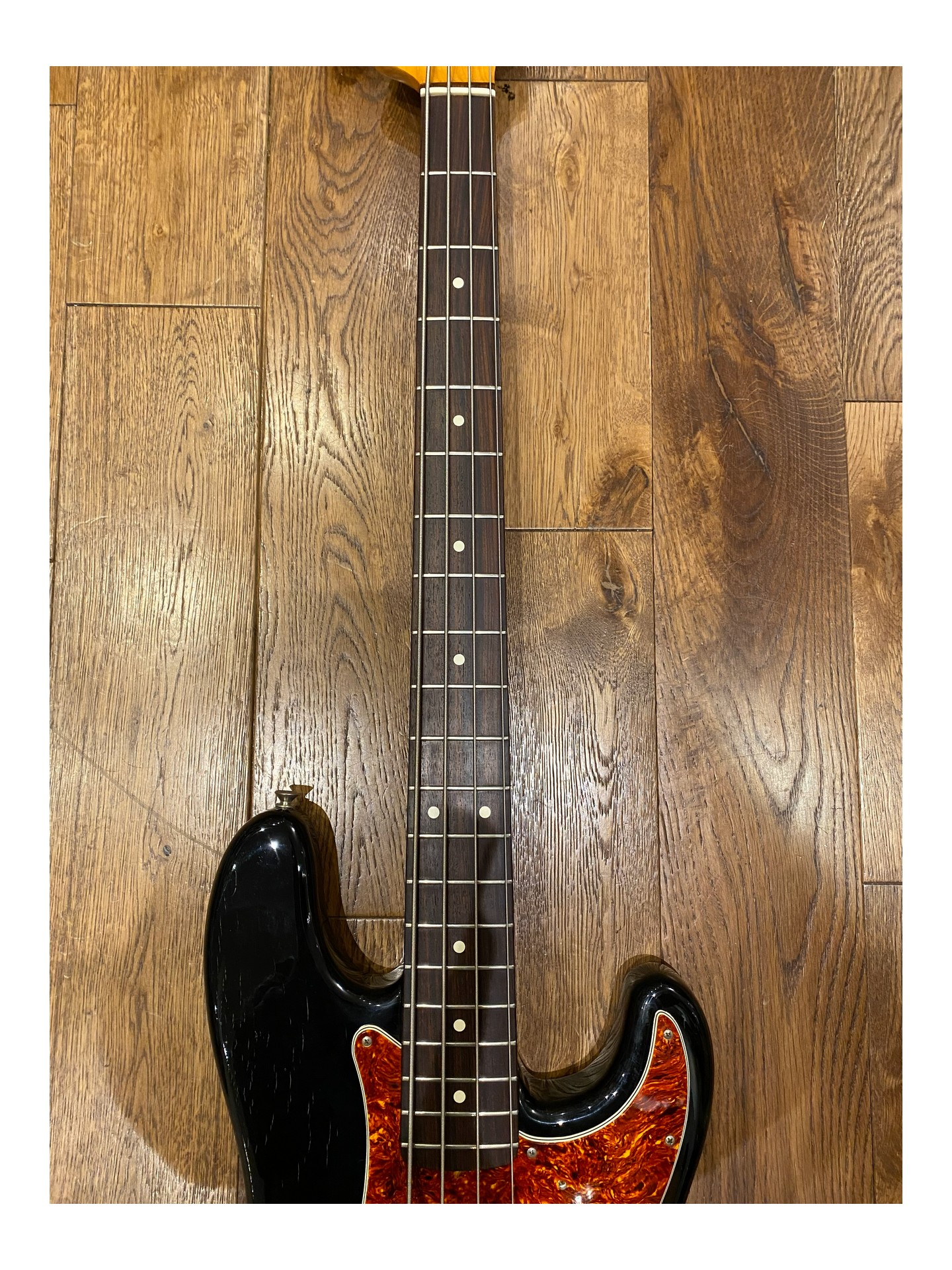 A superb Fender Precision Bass American Vintage ’62 Reissue, refinished in black, made in the USA in 1990. Produced for the Japanese market, as evidenced by the “Yamano” notebook included in its original Fender tweed hard case. Yamano is the Fender importer in Japan, whose selections are highly sought after and recognized as the best of US-made exports. An excellent Lollar P-Bass pickup has replaced the original pickup, which is also included in the case. This is a lightweight P-Bass (3.8kg) with remarkable sound. Excellent value for money!