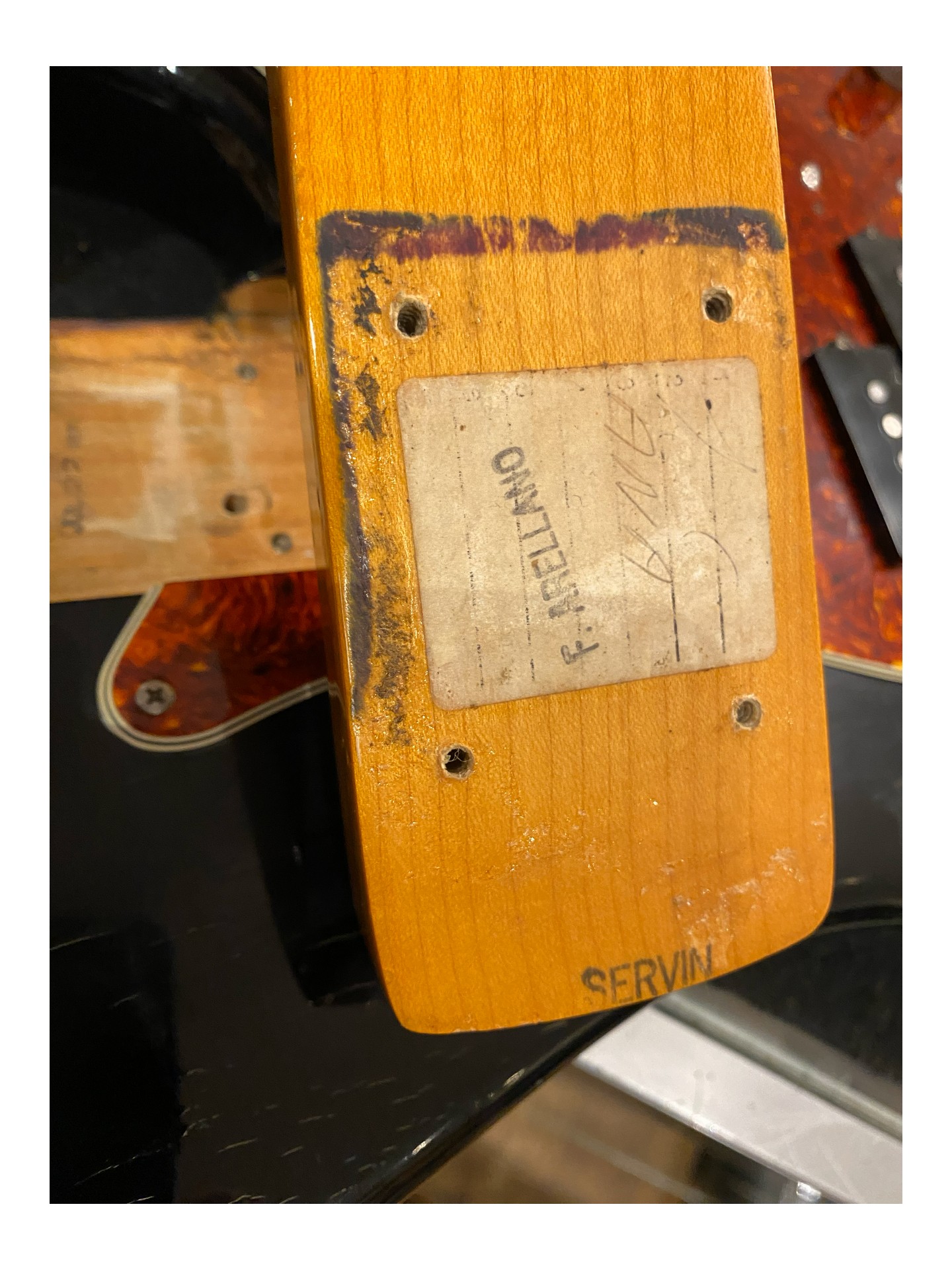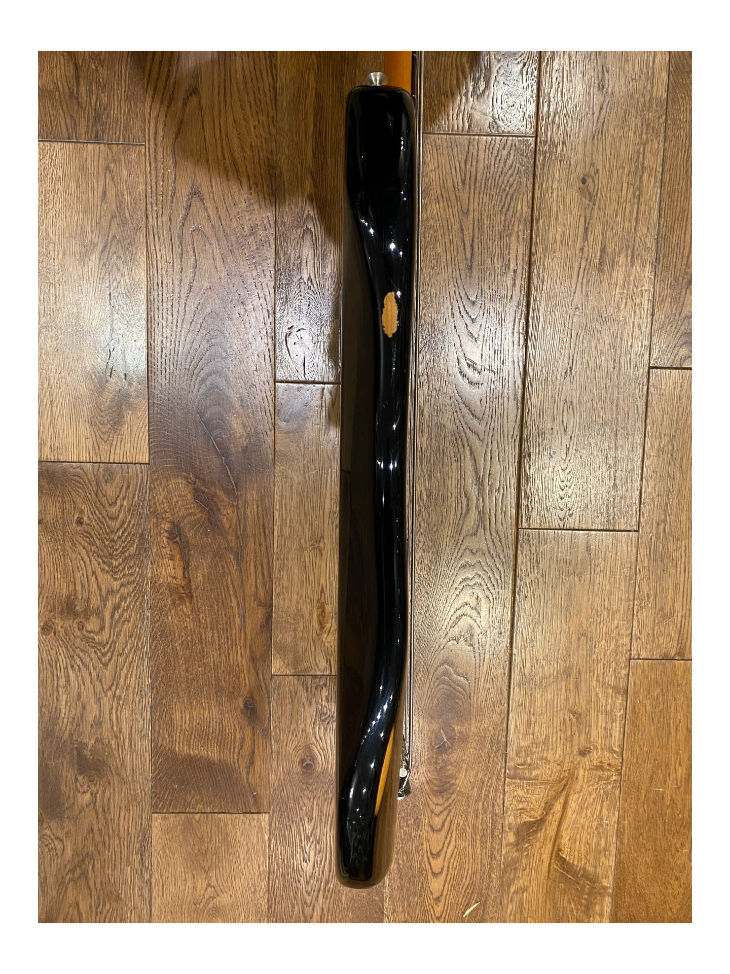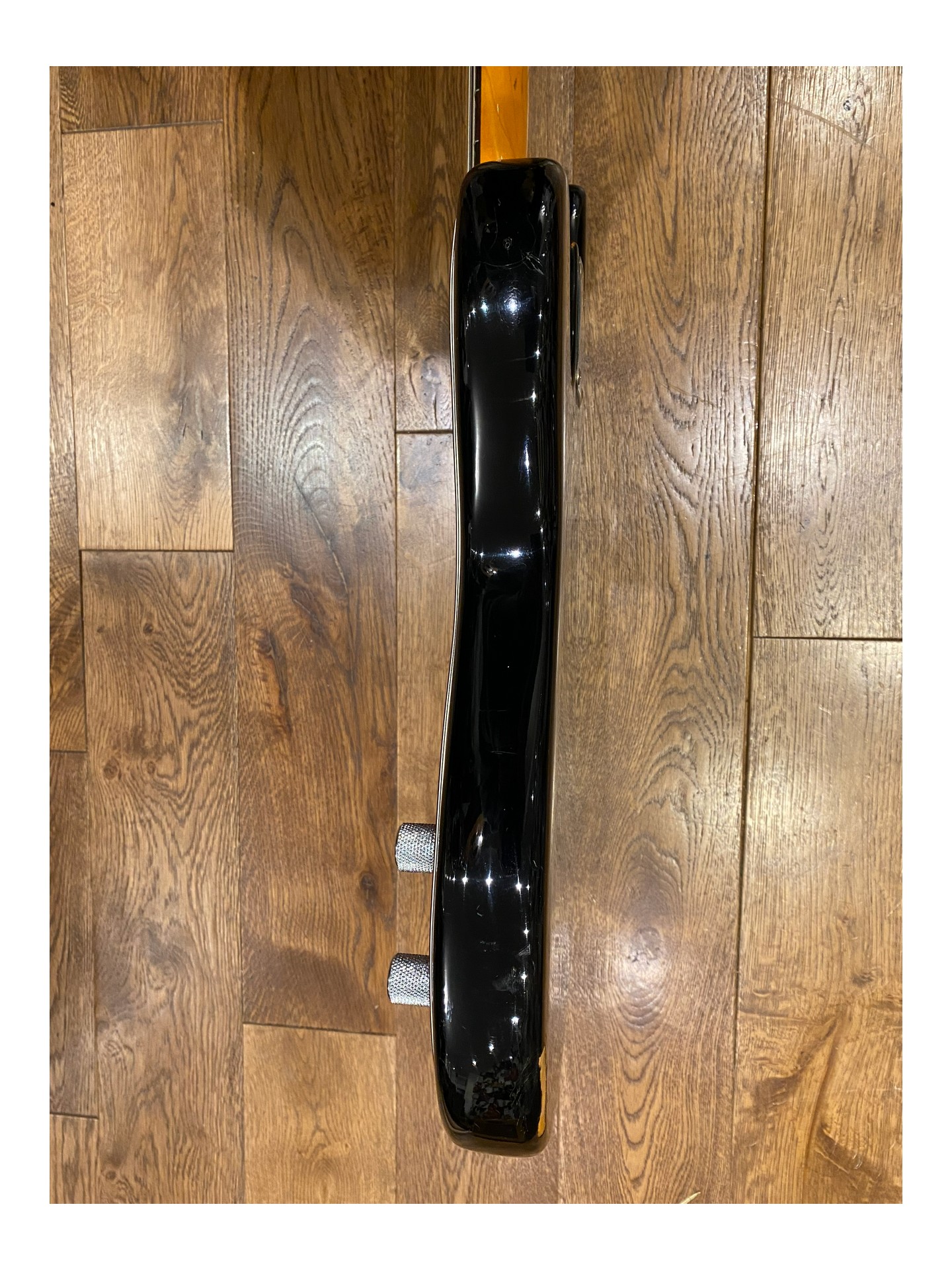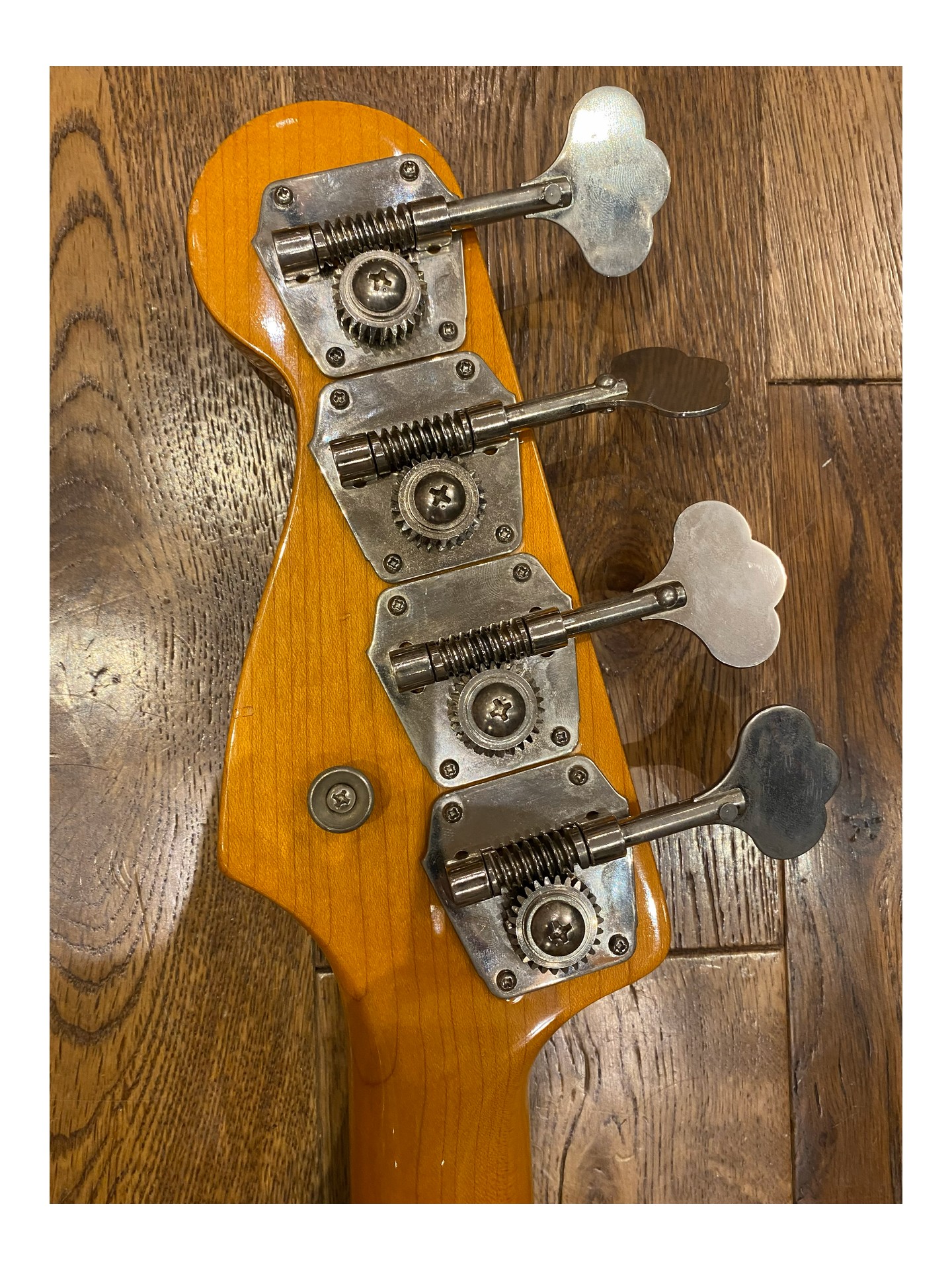 A superb Fender Precision Bass American Vintage ’62 Reissue, refinished in black, made in the USA in 1990. Produced for the Japanese market, as evidenced by the “Yamano” notebook included in its original Fender tweed hard case. Yamano is the Fender importer in Japan, whose selections are highly sought after and recognized as the best of US-made exports. An excellent Lollar P-Bass pickup has replaced the original pickup, which is also included in the case. This is a lightweight P-Bass (3.8kg) with remarkable sound. Excellent value for money!