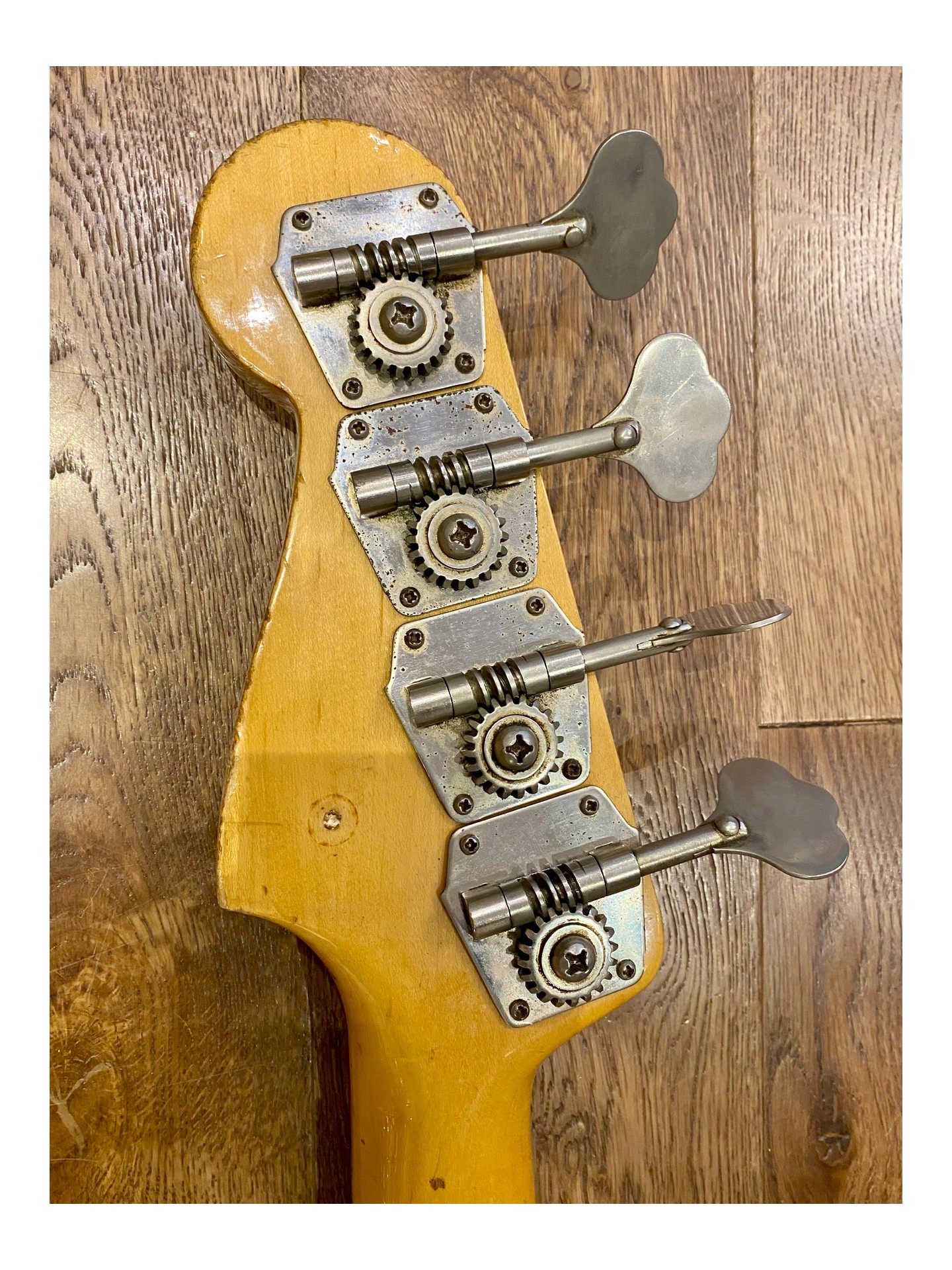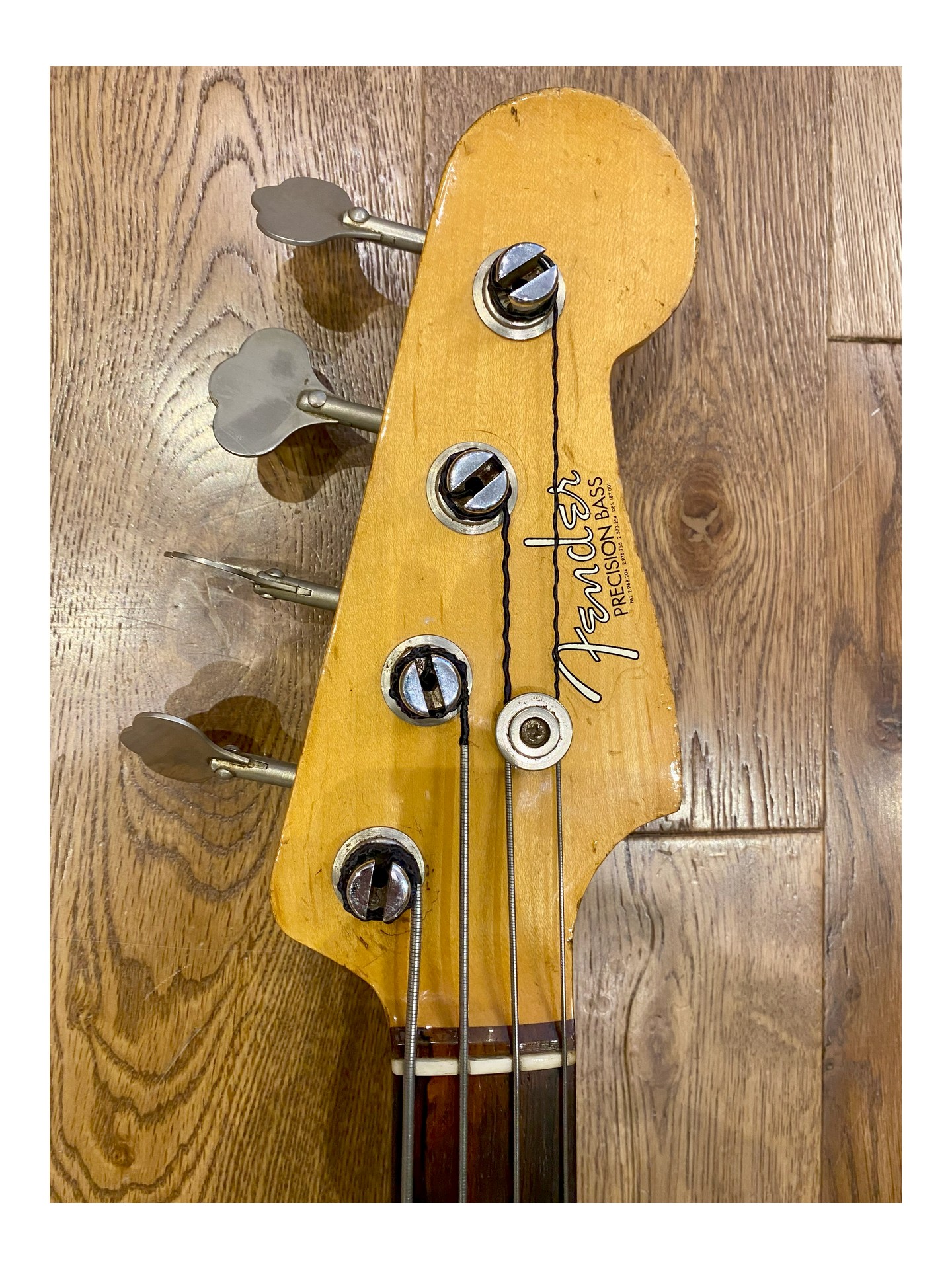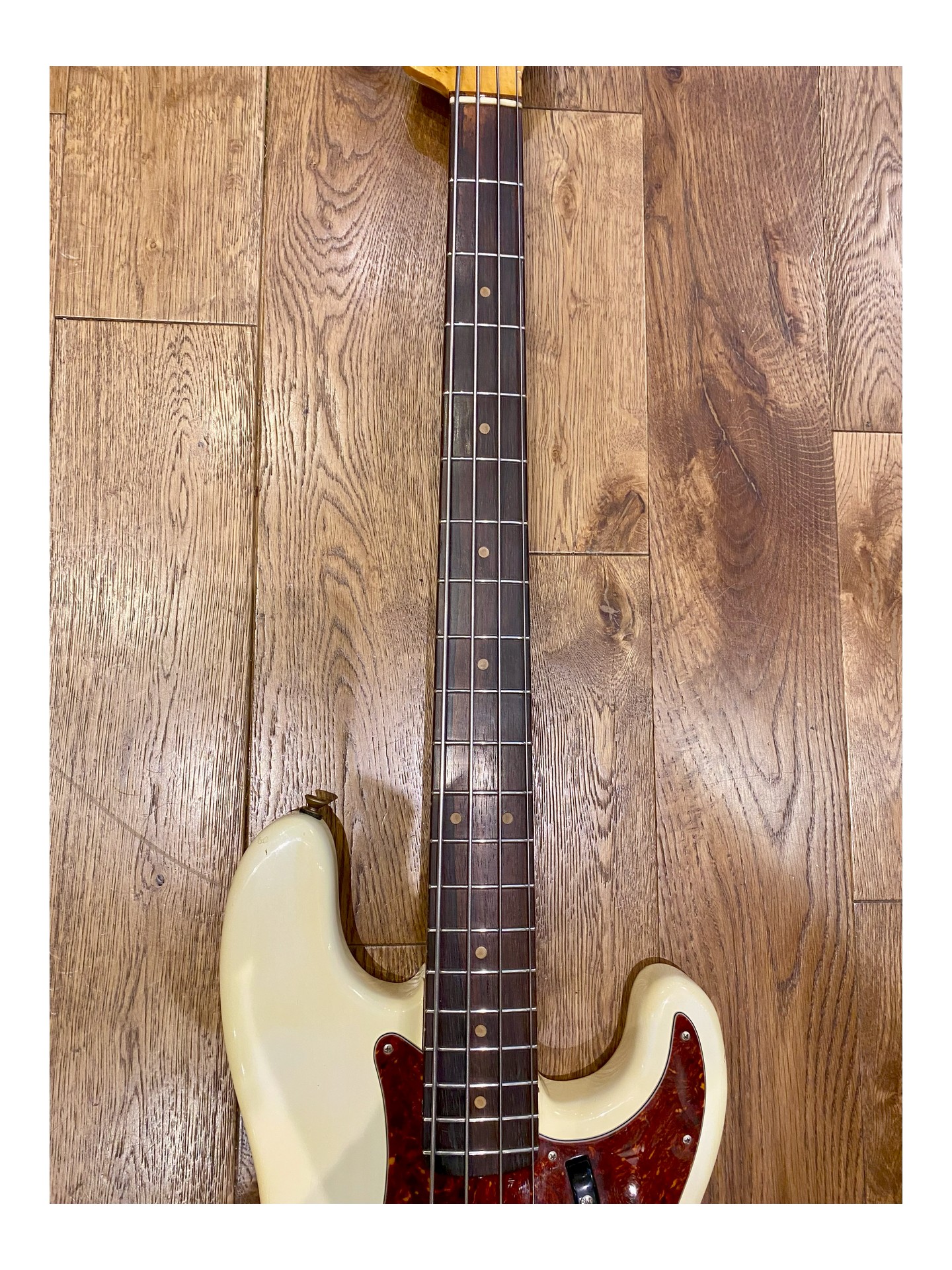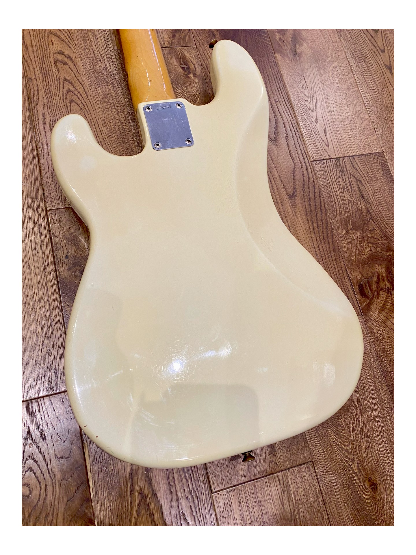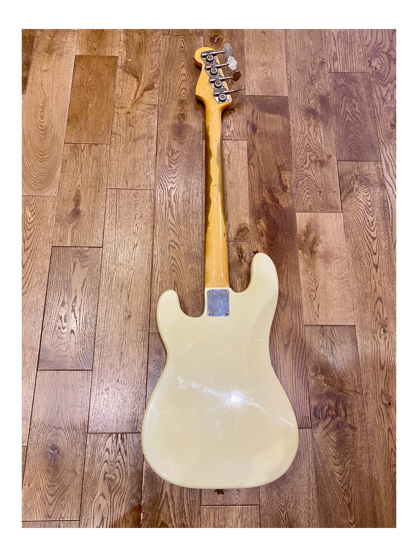 Une Fender Precision Bass Série L de 1963 en « player condition » , revernie en Olympic White, qui sonne magnifiquement! Si vous voulez marcher sur les traces de James Jamerson, Carole Kaye, Pino Palladino, Roger Waters, John Deacon et tant d’autres… C’est la basse parfaite!