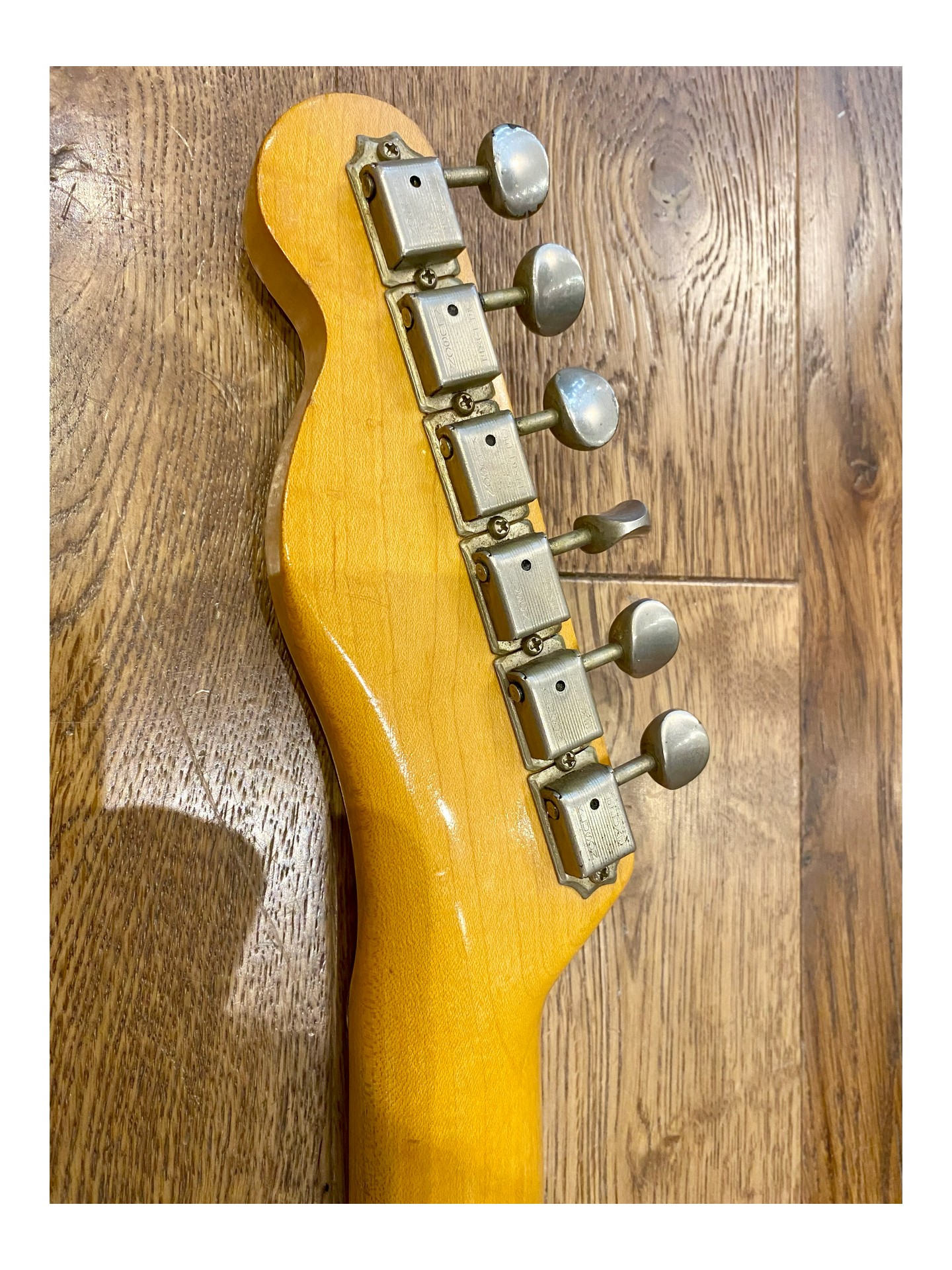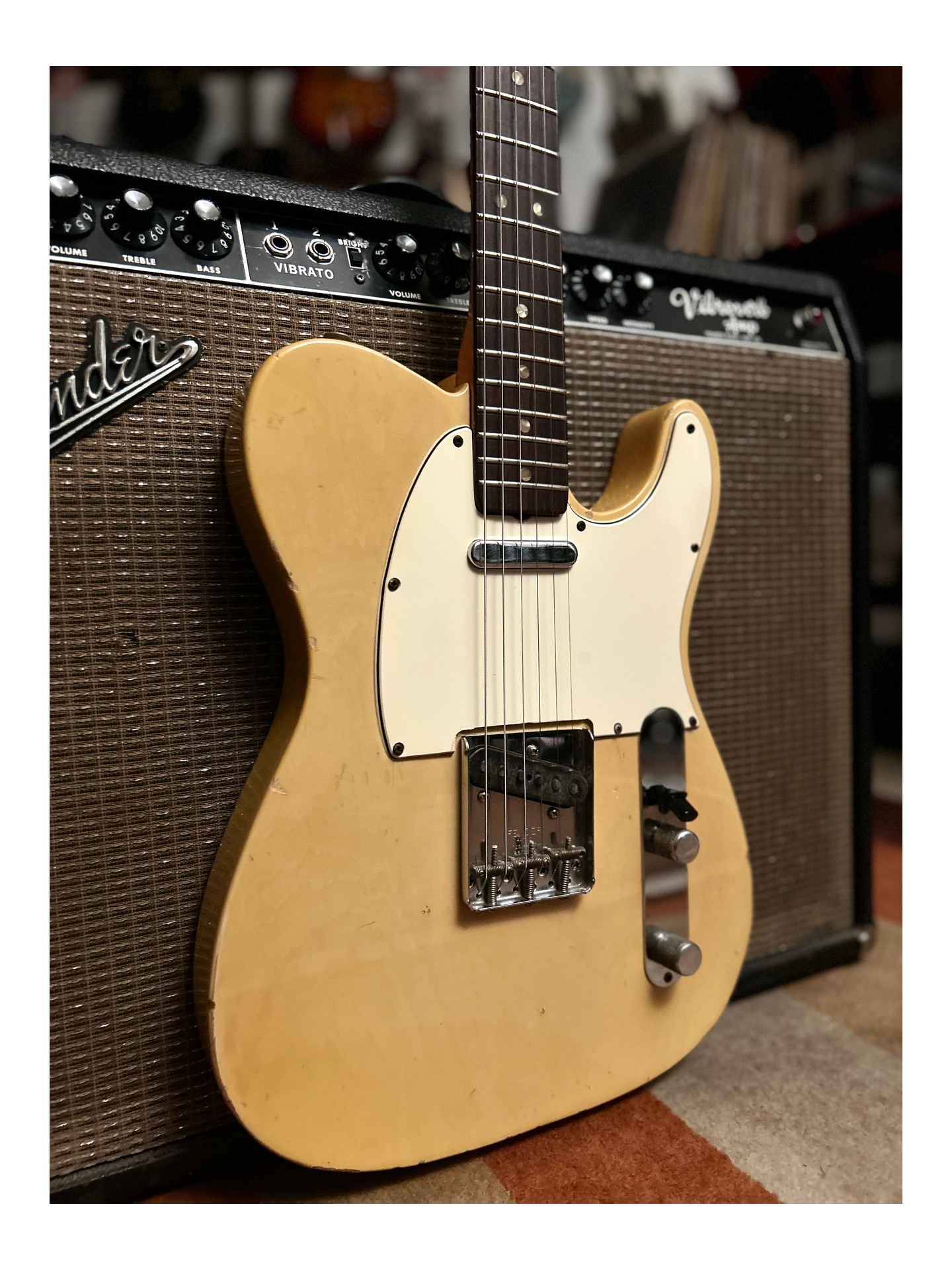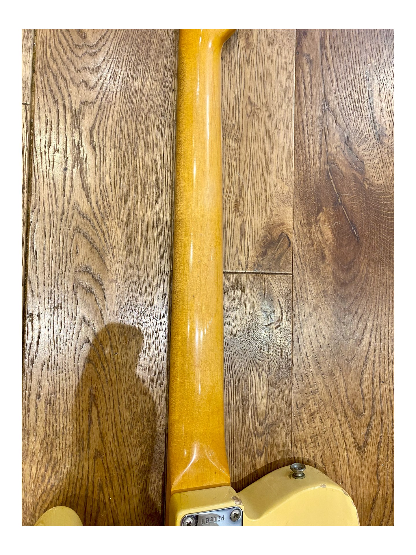 A magnificent blond finish Fender Telecaster from 1966. A previous owner, who must have been obsessed with owning an L Series, changed the neck plate to an « L plate », where there should have been an “F plate.” Similarly, he changed the 3 FEB 66 inscription on the neck heel to 3 FEB 65. However, the neck is indeed from 1966, with its gold “transition” Fender logo decal and two patent numbers, 02,573,254 and 3,143,028, which only appeared at the end of 1965. With the exception of refretting, these are the only modifications made to this guitar, which has its original finish, electronics, and pickups. The tuners are the original Kluson “double line” tuners. In short, this is a 1966 Telecaster in very good condition at a reasonable price. Perfect playability and exceptional sound! Comes in its original case.
