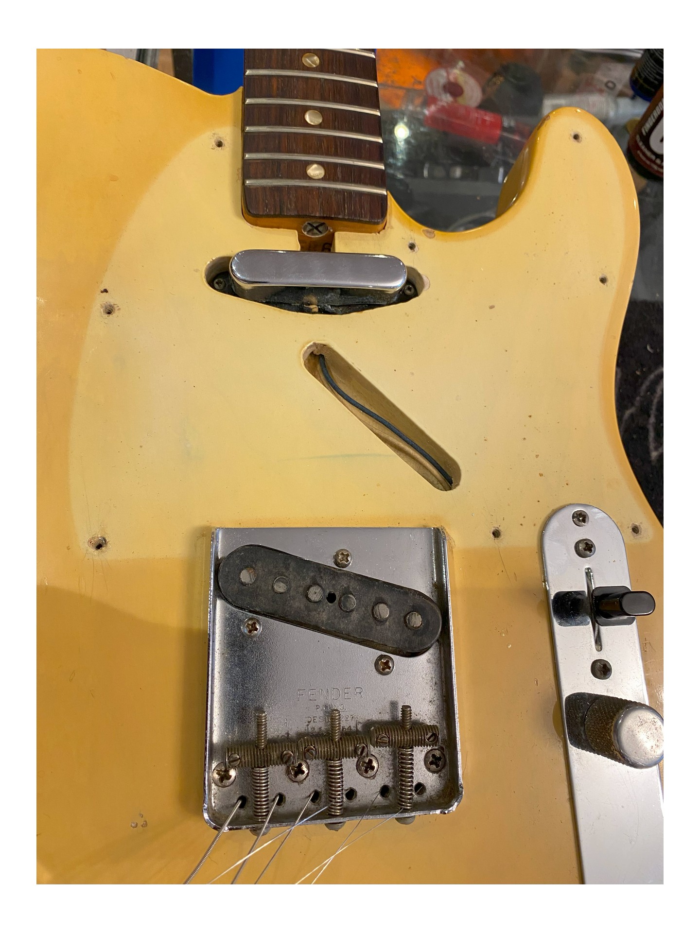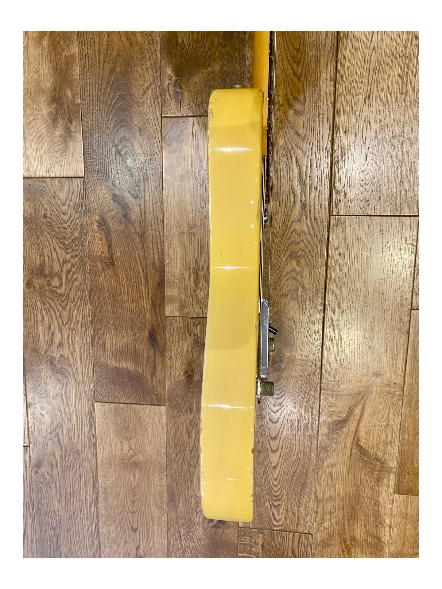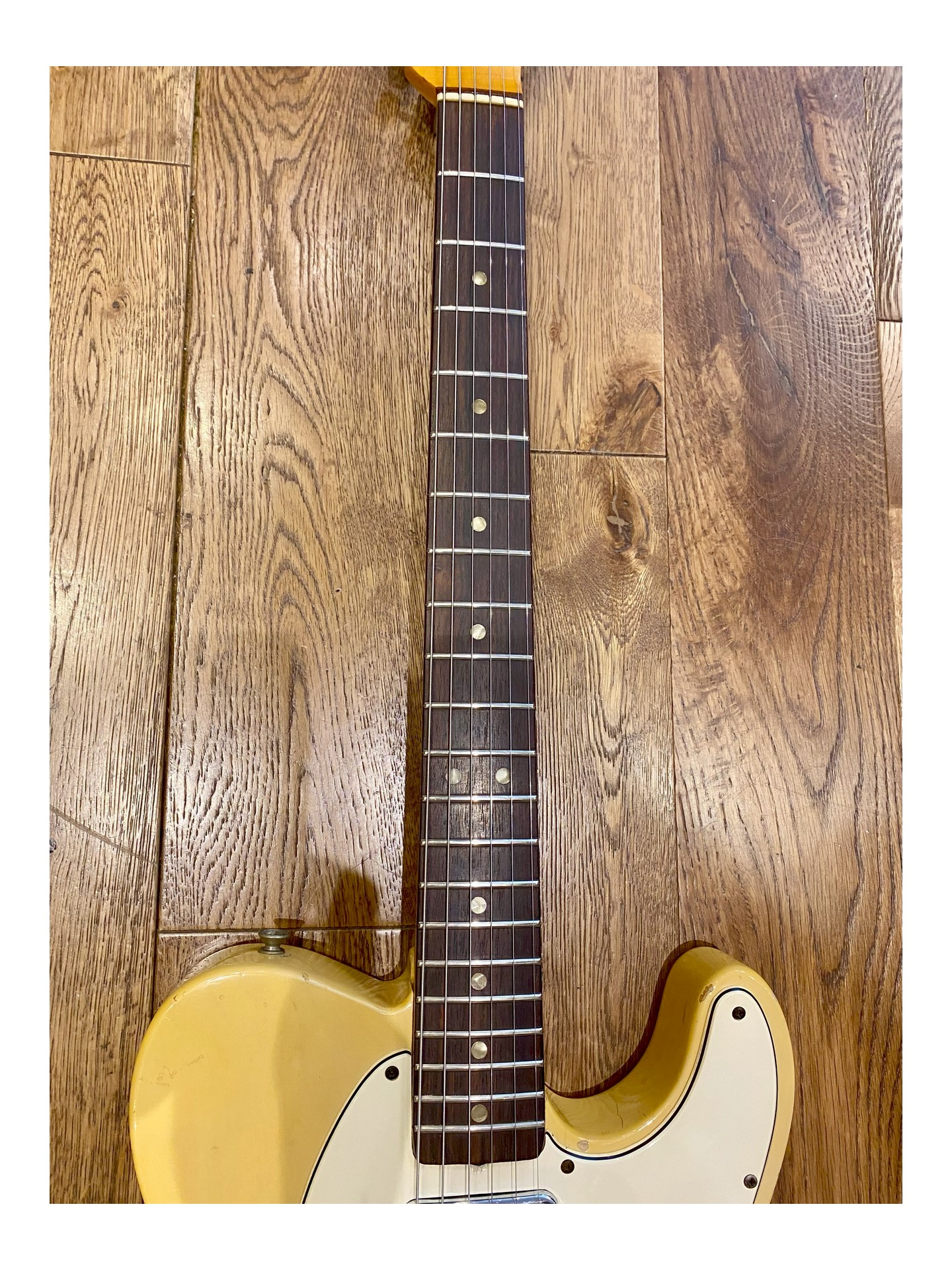 A magnificent blond finish Fender Telecaster from 1966. A previous owner, who must have been obsessed with owning an L Series, changed the neck plate to an « L plate », where there should have been an “F plate.” Similarly, he changed the 3 FEB 66 inscription on the neck heel to 3 FEB 65. However, the neck is indeed from 1966, with its gold “transition” Fender logo decal and two patent numbers, 02,573,254 and 3,143,028, which only appeared at the end of 1965. With the exception of refretting, these are the only modifications made to this guitar, which has its original finish, electronics, and pickups. The tuners are the original Kluson “double line” tuners. In short, this is a 1966 Telecaster in very good condition at a reasonable price. Perfect playability and exceptional sound! Comes in its original case.