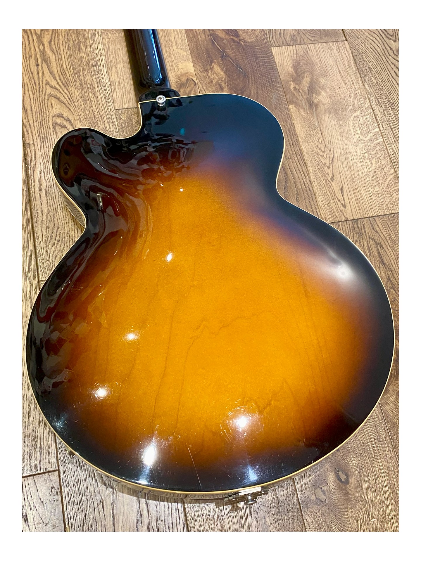 A Bigsby was fitted at one point, but the original tailpiece has been reinstalled. The pickups have been replaced with high-end Hepcat pickups. Comes in its original case.