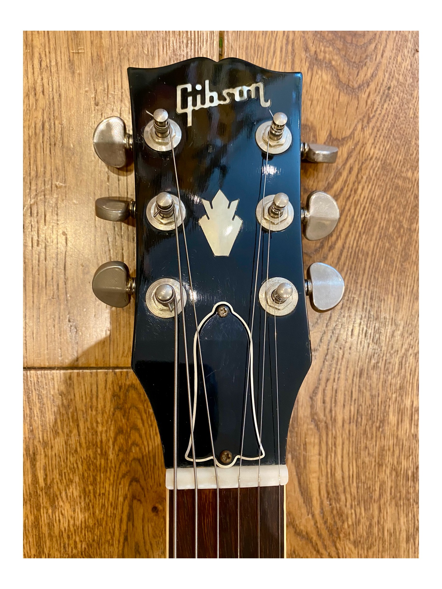 Gibson ES-335 DOT-Reissue de 1984 en excellent état. Première « ES-335 Dot re-issue » du Custom Shop avec une table en érable flammé en finition Sunburst, avec ses désirables micros « Tim Shaw PAF ». Manche en une pièce d’acajou très confortable avec un profil large, mais pas épais. L’électronique a été remplacée (potards+ capacités), ainsi que le sillet de tête et le chevalet. Les pièces d’origine sont fournis dans l’étui. La guitare a également été refrettée pour une jouabilité parfaite. Les deux autocollants PAF sont encore sur les entourages des micros Humbuckers « Tim Shaw » d’origine ! L’étui d’origine en cuir marron avec une doublure rose est inclus.