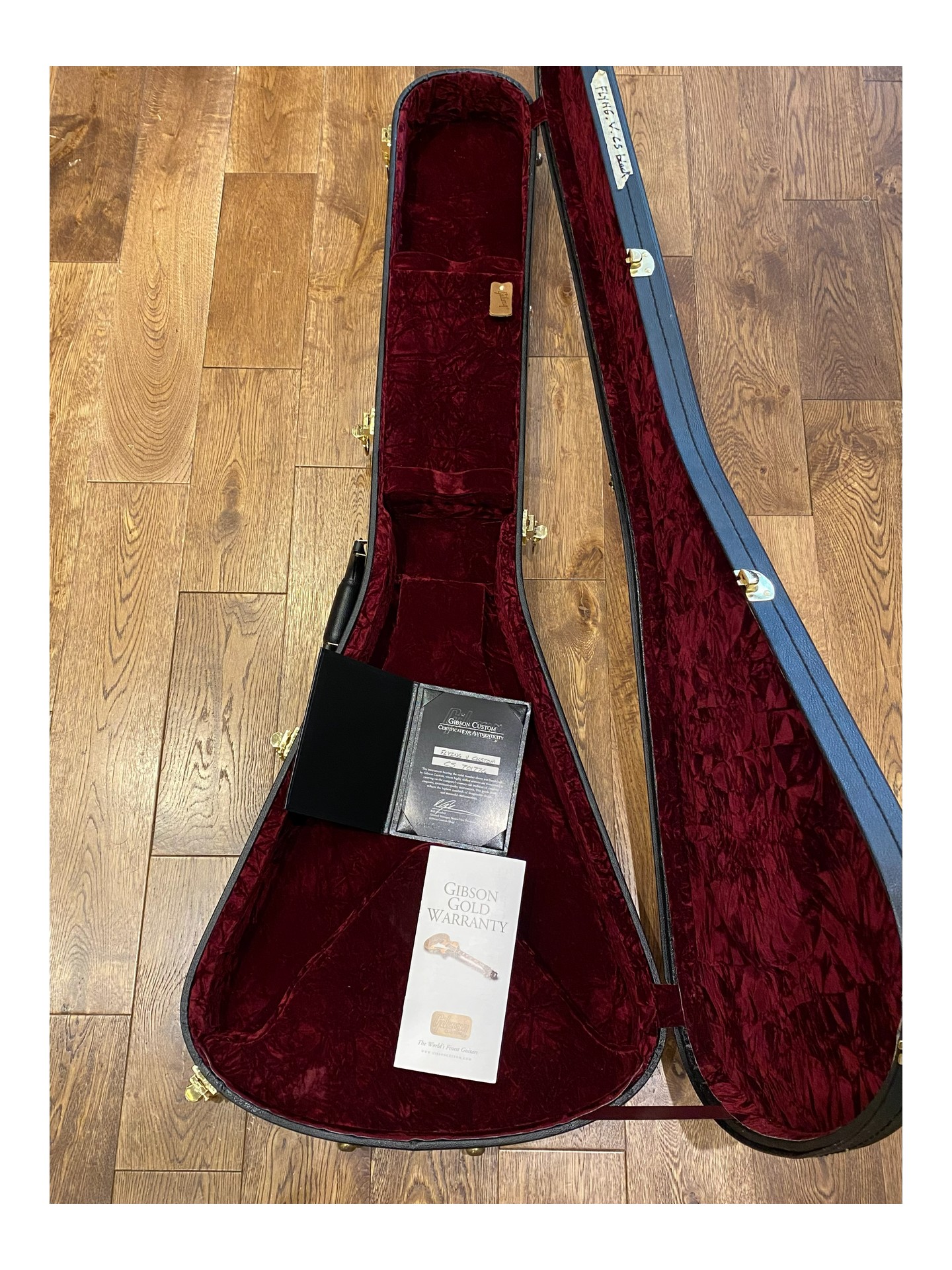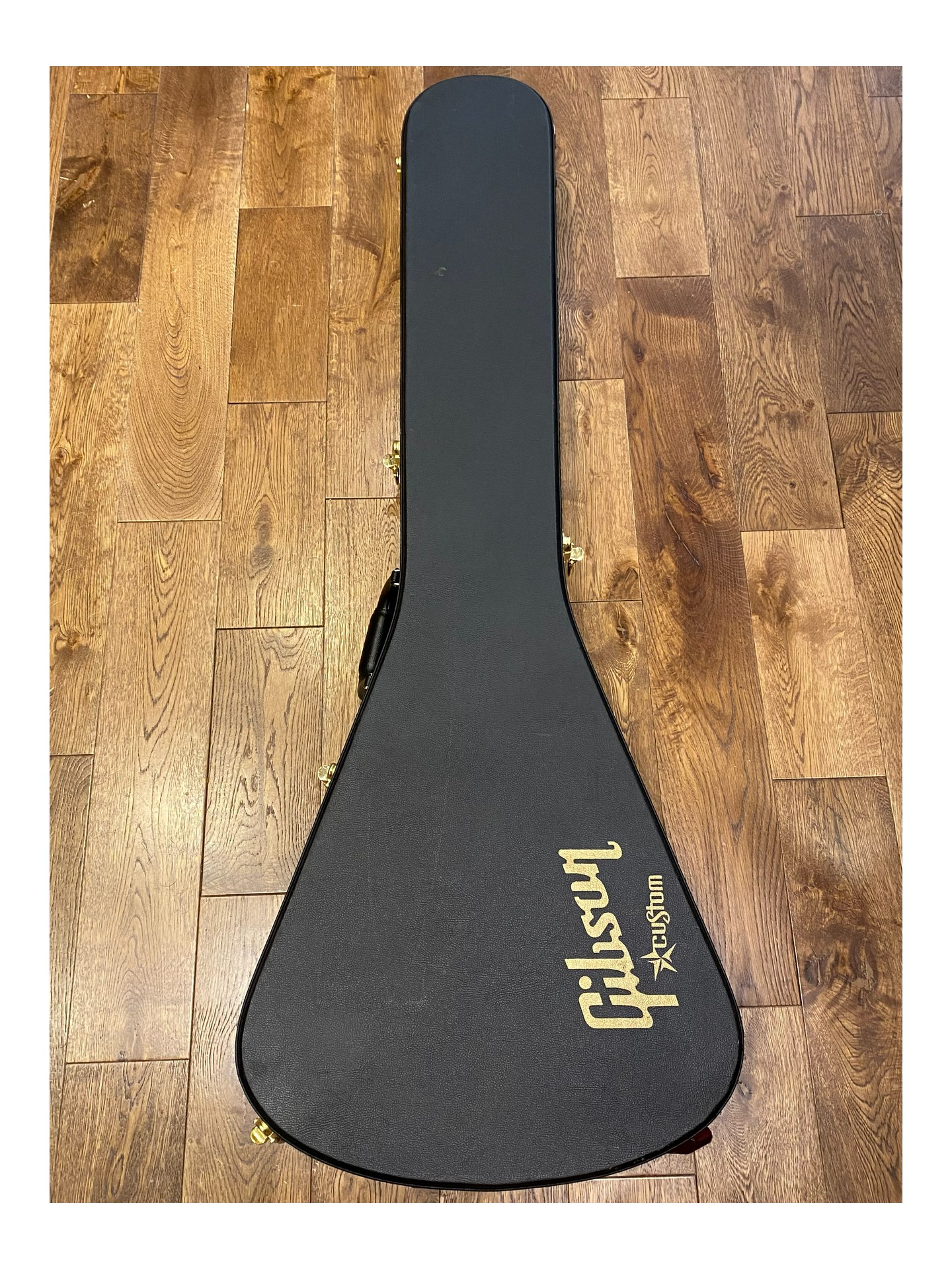 A limited edition of the iconic Flying V model in perfect condition! The 2017 Gibson Custom Flying V Limited Edition “Custom Ebony.” Its sumptuous appearance combines block inlays with gold hardware like on a Les Paul Custom. It is equipped with 490R and 498T pickups. This instrument offers a dynamic sound with impressive power!