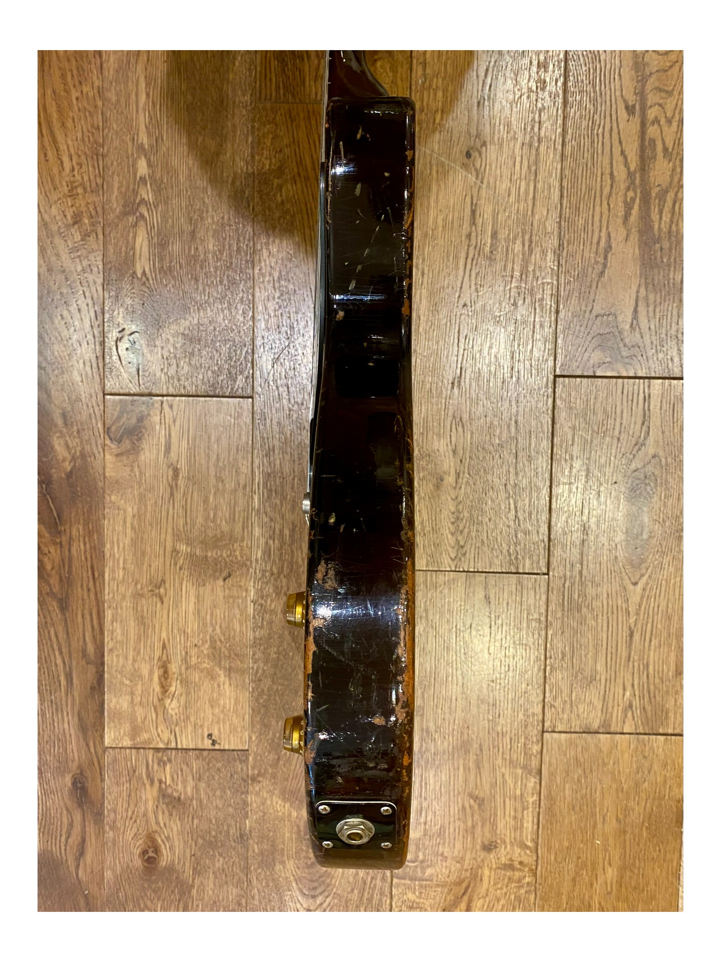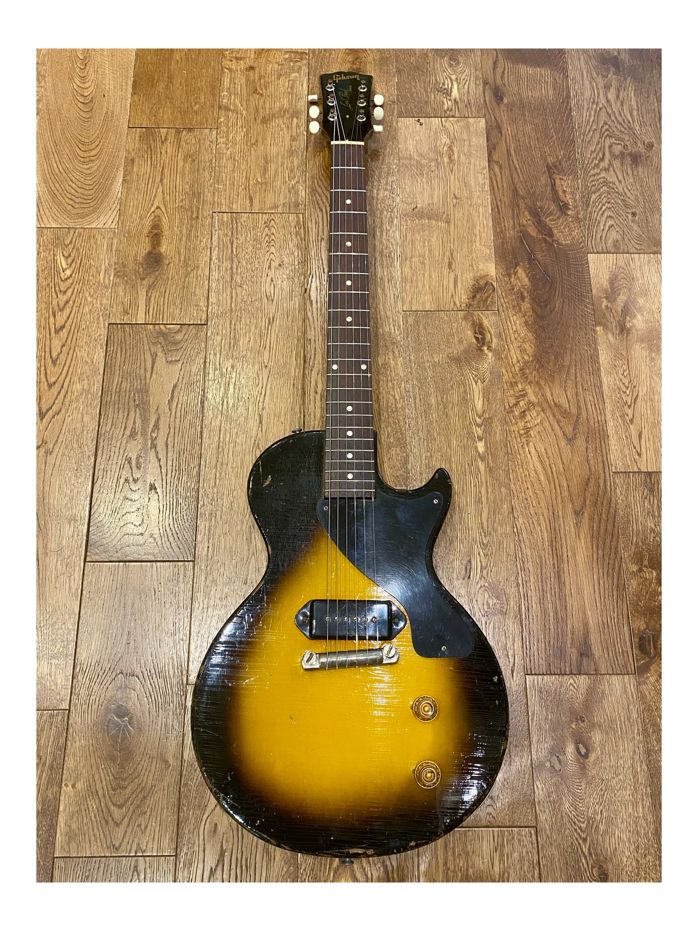 Cette Gibson Les Paul Jr de 1955, la seconde année de production, témoigne de manière exceptionnelle du savoir-faire de Gibson à cette époque. Initialement présentée comme un modèle étudiant avec des ornements et des accessoires simplifiés, la Les Paul Junior est depuis devenue un incontournable très recherché par les musiciens professionnels et les collectionneurs. Légère et confortable, la guitare est dans un état entièrement d’origine magnifique. La patine et le « weather checking du vernis sont splendide et témoigne qu’elle a été joué avec passion! Les potentiomètres sont des originaux de la marque IRC datés de la 18ème semaine de 1955 et la capacité « Dubilier » est également d’origine. Il y a une certaine magie dans le son d’une pièce d’acajou massif avec un seul micro P90″dog ear » qui résonne – nous pouvons attester de ce sentiment avec une guitare comme celle-ci. La beauté dans la simplicité! Livrée en étui rigide non original.