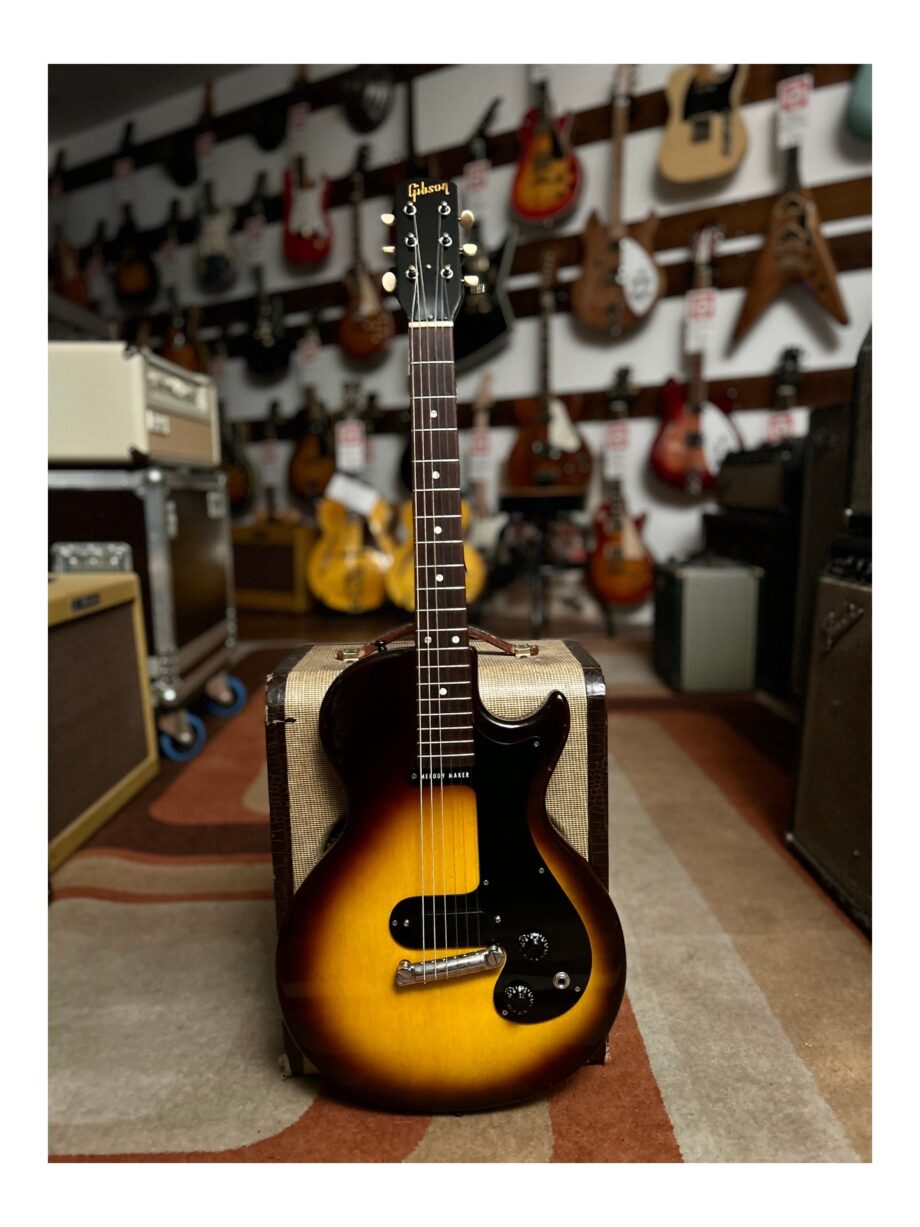 Une très belle et rare Melody Maker « short scale » de 1959, l’année mythique chez Gibson. Il s’agit de la première année de production pour ce modèle, avec le désirable « fat pickup ».
